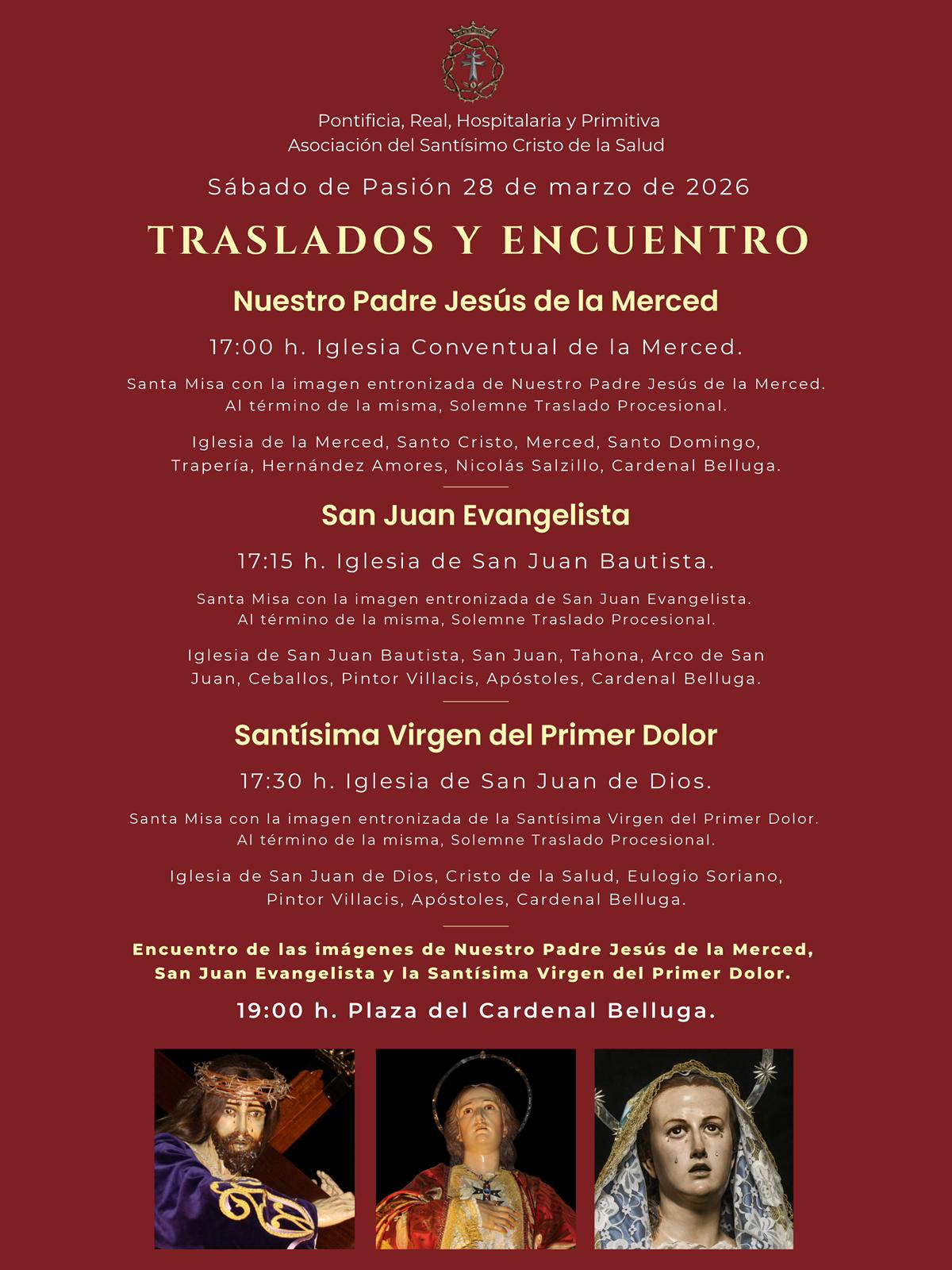 27/12/2026 19:00 - Pontificia, Real, Hospitalaria y Primitiva Asociación del Santísimo Cristo de la Salud. Sagrada Eucaristía en honor a San Juan Evangelista.