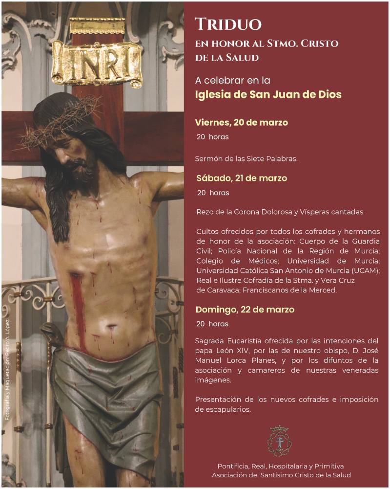 14/10/2026 20:30 - Pontificia, Real, Hospitalaria y Primitiva Asociación del Santísimo Cristo de la Salud. Primer día del Triduo.